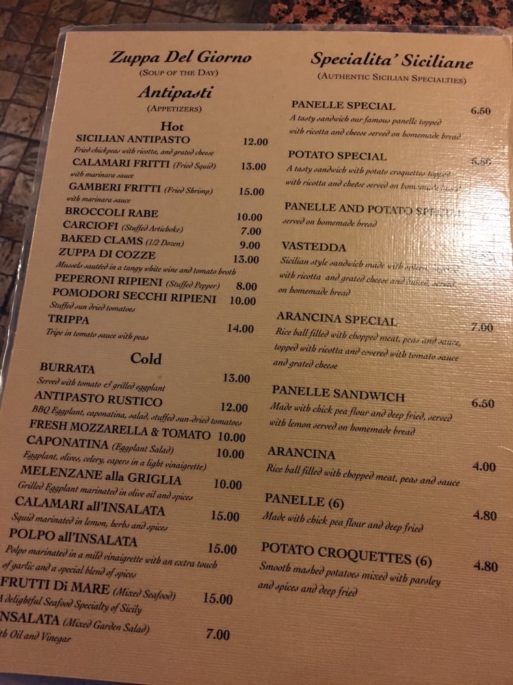 Ferdinando's Focacceria, a charming Italian restaurant in Brooklyn, NY, offers a variety of authentic dishes with a focus on Sicilian specialties. With a cozy ambiance and outdoor seating options, this restaurant provides a unique dining experience. The menu features a wide selection of hot and cold antipasti, including Fried Calamari and Burrata, as well as traditional Italian beverages such as espresso and imported wine. Customers rave about the old-world charm and historic atmosphere of Ferdinando's, making it a popular choice for both locals and visitors. The veal parmigiana, panelle sandwich, and pasta dishes have received high praise for their quality and flavor. Overall, this restaurant is a hidden gem for those seeking classic Sicilian cuisine in a nostalgic setting.